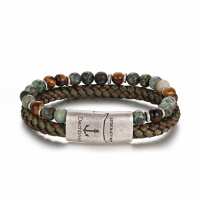 Armband Playa Beach (Multistrang) Tau Leder, African Turquoise & Tiger Eye L / vintage