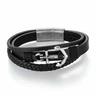 Armband Steuerbord (Multistrang) Leder mit Edelstahl-Anker L / vintage