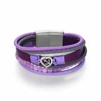 Armband Ankerliebe (Multistrang) mit Segelseil, Leder & Lila Jade M