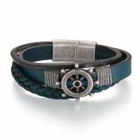 Leder Armband Steuermann (Multistrang) mit Steuerrad M / blau-grau
