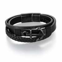 Armband Steuerbord (Multistrang) Leder mit Edelstahl-Anker L / black-vintage