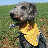 Yellow Polka Dot Blue Dog Bandana Large