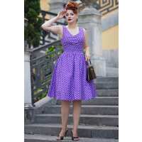May Crossover Bust Purple White Polka Dot Dress 14