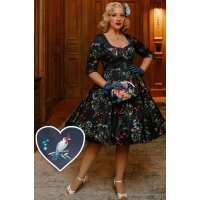 Lily Red Rose & Bird Off Shoulder Dress In Black 12