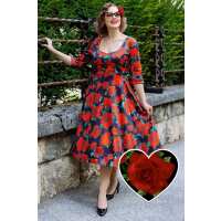 Scarlette Black/Red Rose Long Sleeved Midi Dress 26