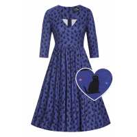 Billie Black Cat Flared Dress in Purple 16