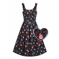 Amanda Black Pleated Dress in Guitar & Stars Print 14