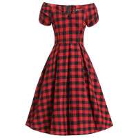 Lily Red Check Off Shoulder Dress 14