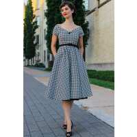 Lily Houndstooth Sleeved Full Circle Dress in Black/White 18