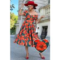Beverly Red Poppy Garden Off Shoulder Dress 16