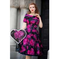 Darlene Retro Black-Pink Roses Swing Dress 20