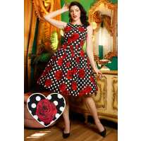 Annie Retro Swing Dress in Black/Red Rose Spot Print 8