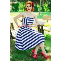 Lana Striped Strapless Swing Dress in Blue-White 8
