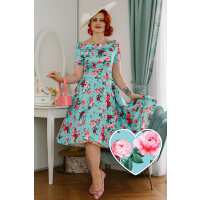 Darlene 50s Style Rose Floral Off Shoulder Swing Dress in Aqua Blue 8