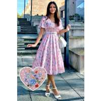 Janice Pink Floral Polka Dot Petal Sleeve Dress 20