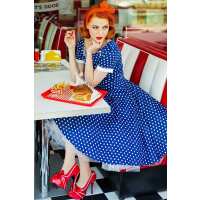 Darlene Retro Polka Dot Swing Dress in Dark Blue 8