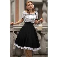 Darlene Retro Swing Dress in White-Black Polka 16