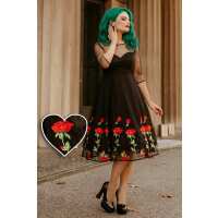 Elizabeth Vintage Style Polka Roses Party Dress in Black-Red 14