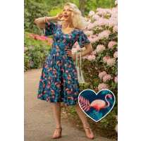 Janice Sleeved Tea Dress In Blue Flamingo & Leaves Print 20