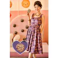 Amanda Purple Retro Flared Dress in Cookie Print 24