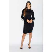 Glitter Long Sleeve All Over Ruched Dress L / Wine