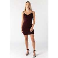 Glitter Spaghetti Strap Mini Dress with Open Back Wine / XS