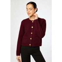 Ribbed Crew-Neck Cardigan with Gold Buttons Elderberry / XS