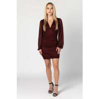 Glitter Mesh Deep V-Neck Bodycon Dress with Balloon Sleeves Wine / L