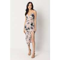 Floral Spaghetti Strap Crossover Midi Dress L / Light Pink/Navy