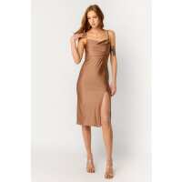 Satin Spaghetti Strap Midi Dress with Side Slit Acorn / L