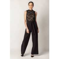 Sleeveless Lace Jumpsuit with Tie-Belt XS / Black/Nude