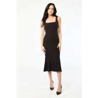 Stretch Crepe Square-Neck Flared Midi Dress Black / XL