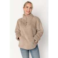Faux Fur Quarter-Zip Pullover Light Tan / L