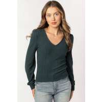 Cable Knit Balloon Sleeve V-neck Sweater Spruce / L