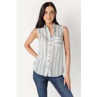 Vine Stripe Sleeveless Shirt White/Blue / L