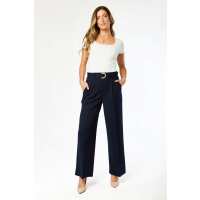 Knit Crepe Wide-Leg Pant with D-Ring Belt Navy / L
