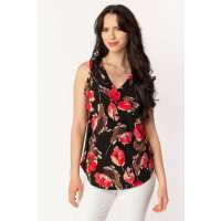 Paintbrush Floral Sleeveless V-Neck Black/Red / L