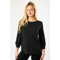 Crew-Neck Balloon 3/4 Sleeve Glitter Top with Shirttail Hem Black / L