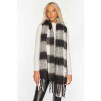 Plaid Boucle Scarf with Fringe