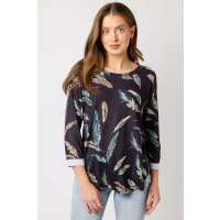 Navy 3/4-Sleeve Printed Sweater Navy Combo / L