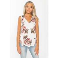 Pink Large Floral Sleeveless V-Neck S / Ivory/Pink