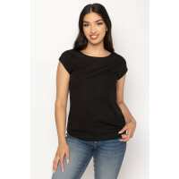Ribbed Cap-Sleeve Top Black / L