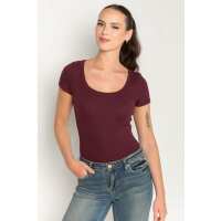 Ribbed Scoop-Neck Tee Wine / S