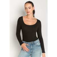 Long Sleeve Scoop-Neck Top Black / L