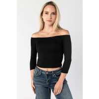 Off The Shoulder Ribbed Tee Black / XL