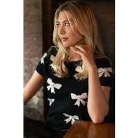 Bow Jacquard Short-Sleeve Sweater Black / S