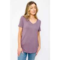 Short Sleeve V-Neck Tee with Shirttail Hem Purple Ash / XL