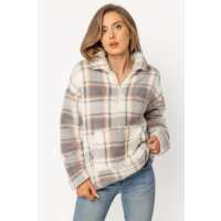 Plaid Quarter-Zip Teddy Sherpa Popover Ivory/Grey/Pink / L