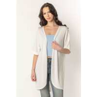 Waffle Knit Short Sleeve Cocoon Cardigan Ivory / L