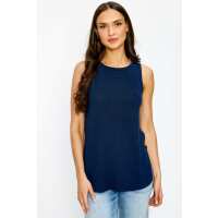 Sleeveless Crew-Neck High-Low Sweater Top Navy / S